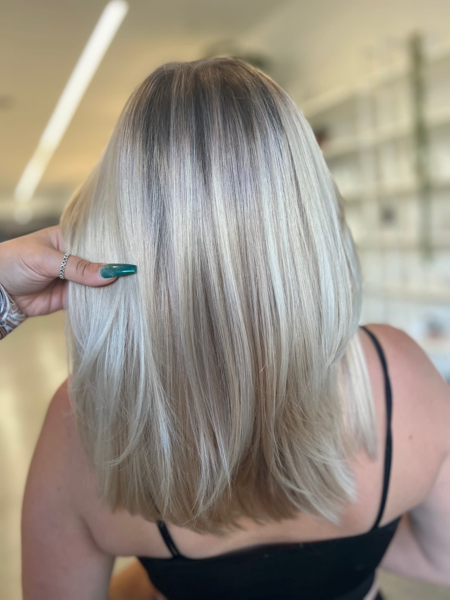Say goodbye to stubborn grey hair with expert coverage that leaves your color looking fresh and even. This service includes precise grey coverage plus a professional style for a polished, confident finish. Perfect for those seeking a seamless, natural look.